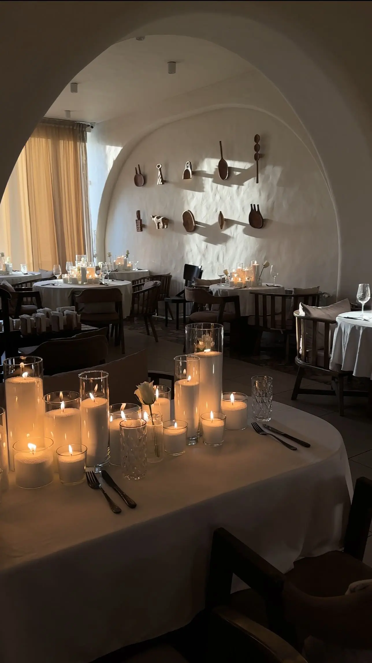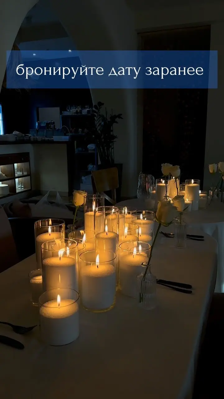 Мягкий свет свечей подчеркивает детали интерьера и создает романтическое настроение.