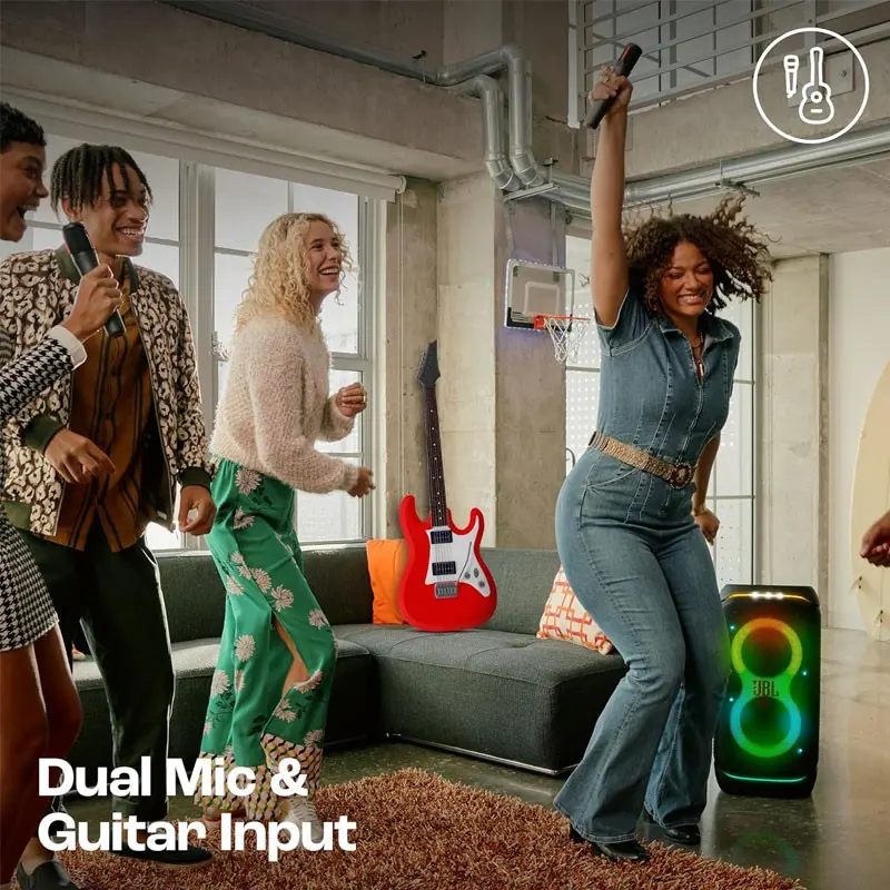 Используйте акустику как комбоусилитель. Подсоединяйте к ней микрофон и гитару и создавайте свою группу! Станьте звездами на любой вечеринке. Настройте эквалайзер под себя и создайте собственный звук. А благодаря динамическому шоу вы будете не только красиво звучать, но и красиво выглядеть на сцене